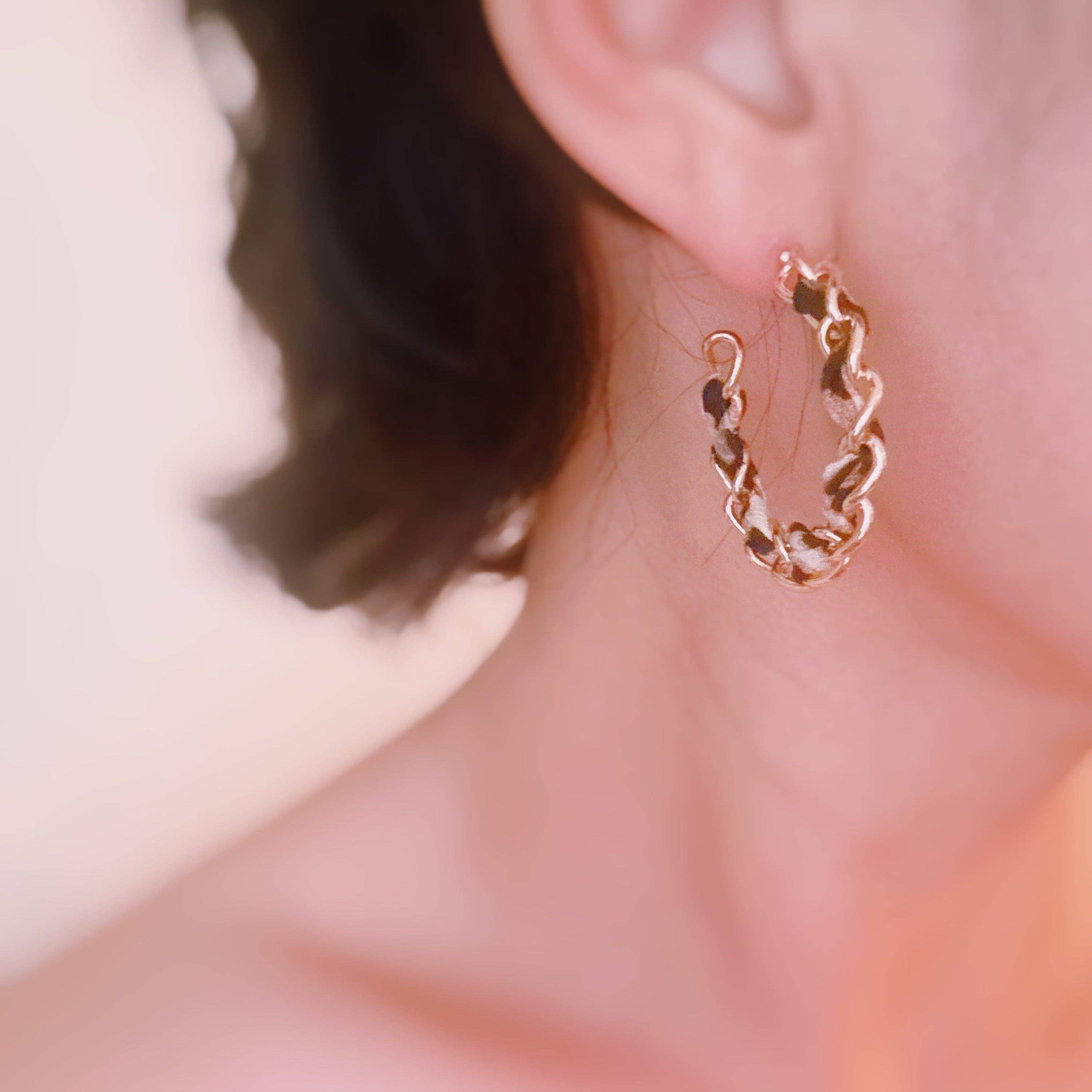 Leopard Scarf-Wrapped Chain Hoop Earrings