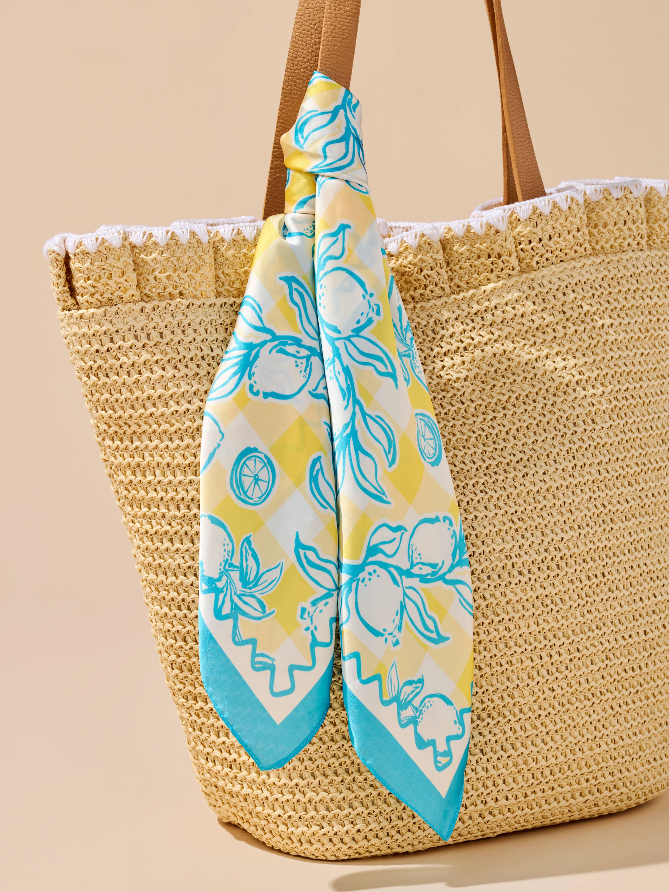 Lemons in Yellow + Turquoise Silky Scarf