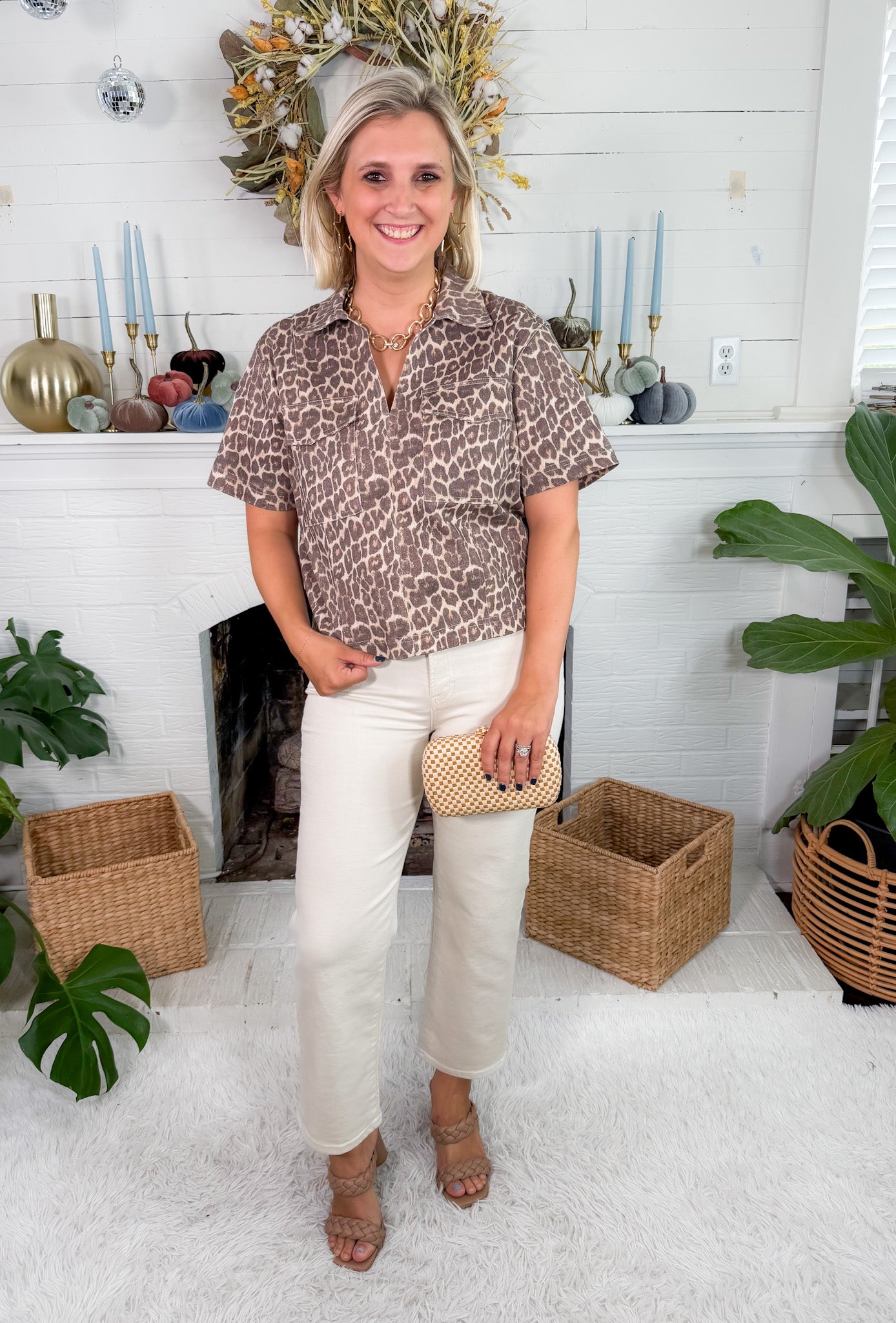 Let your WILD side fly with our NEW Amber Leopard Denim Pocket Crop Top! She features a cropped cargo style + trendy leopard print, blending style with a flattering fit effortlessly! Pair her with your favorite Fall denim or even a fun pleather bottom + booties for a casual chic style that everyone will love on you!