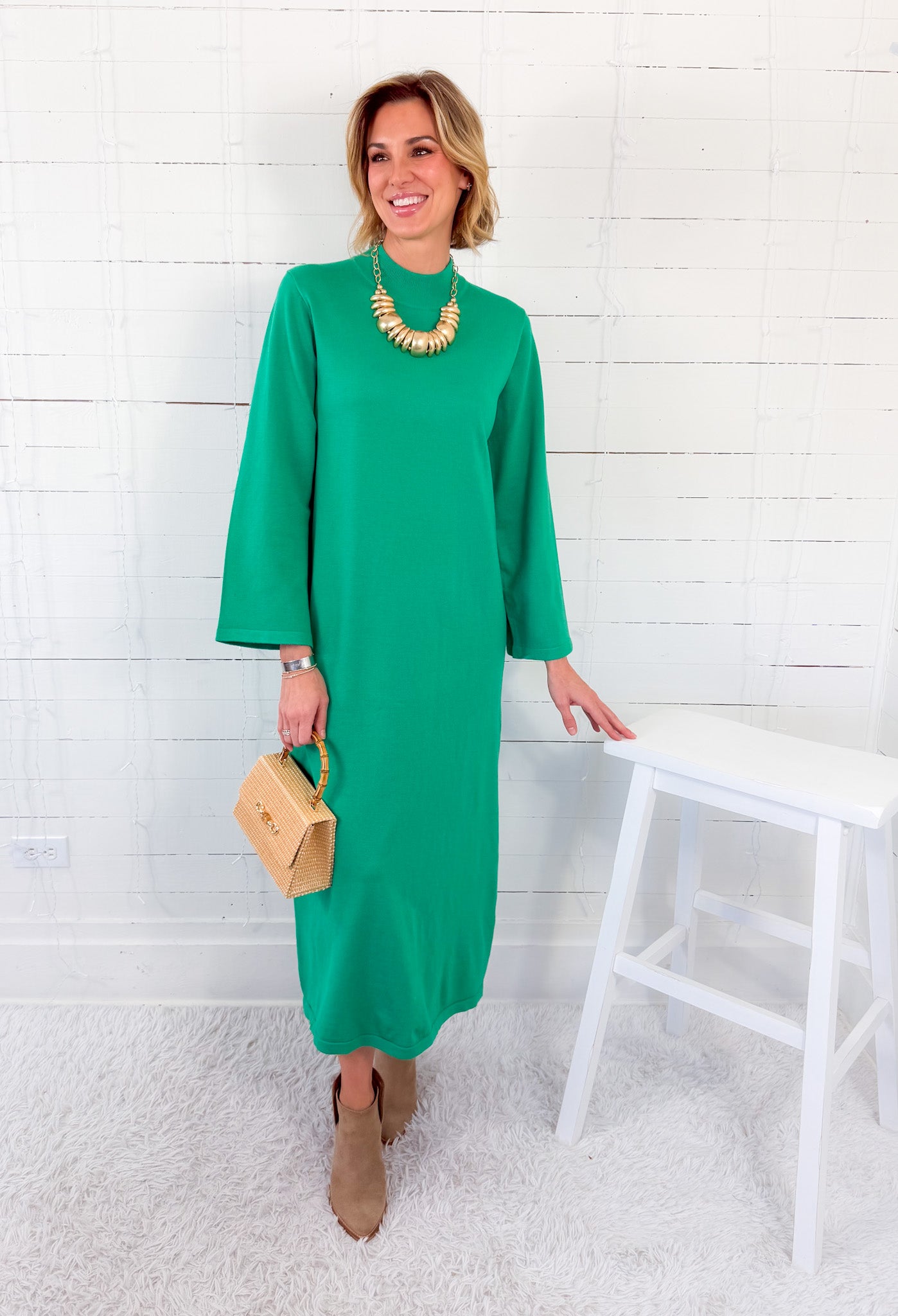 Embrace cozy elegance in our NEW Anna Kelly Green Sweater Dress! She is designed to be your favorite cold-weather staple with a little cozy factor mixed in! Her soft kelly green sweater knit drapes loosely on your body for an effortlessly relaxed yet refined silhouette. Featuring a stylish ribbed mock neck + long sleeves, Anna offers full coverage + comforting warmth without sacrificing style! Pair her back with anything from boots to heels for a chic look every time!