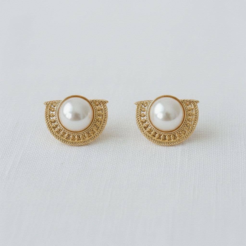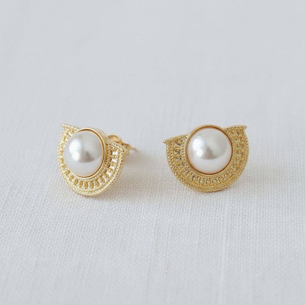 Artisan Geometric Pearl Half-Moon Earrings