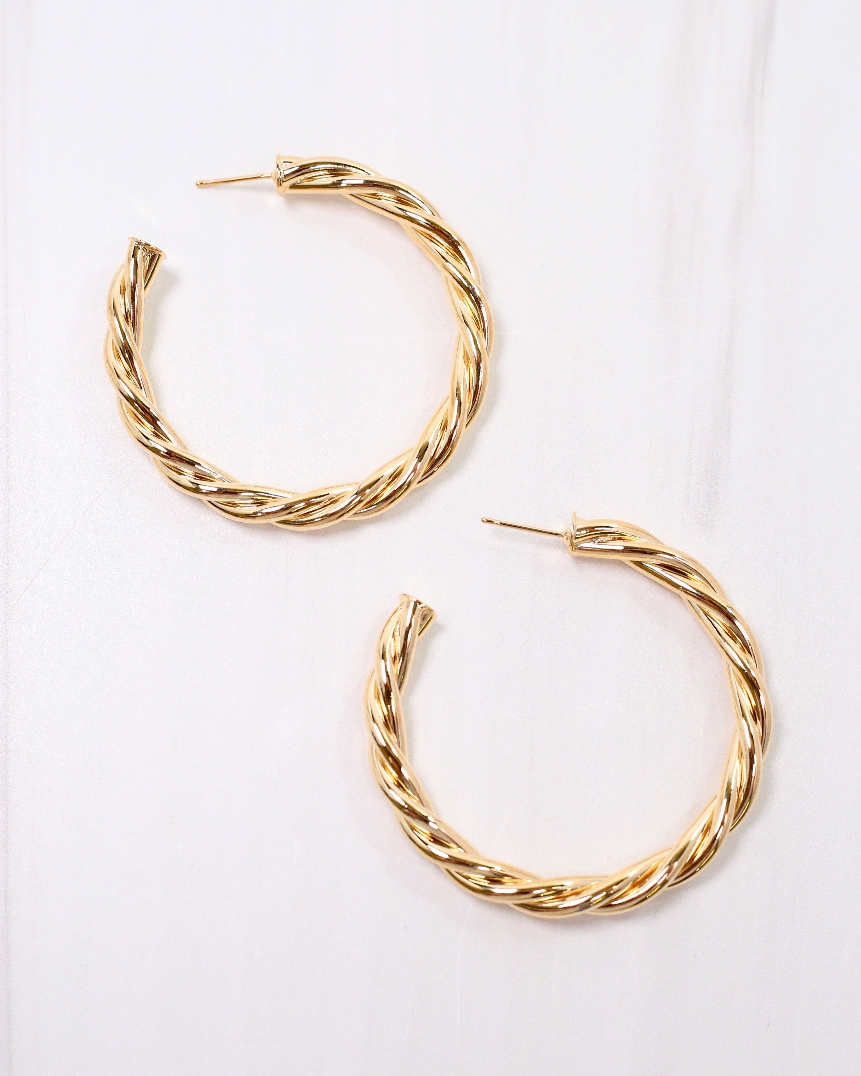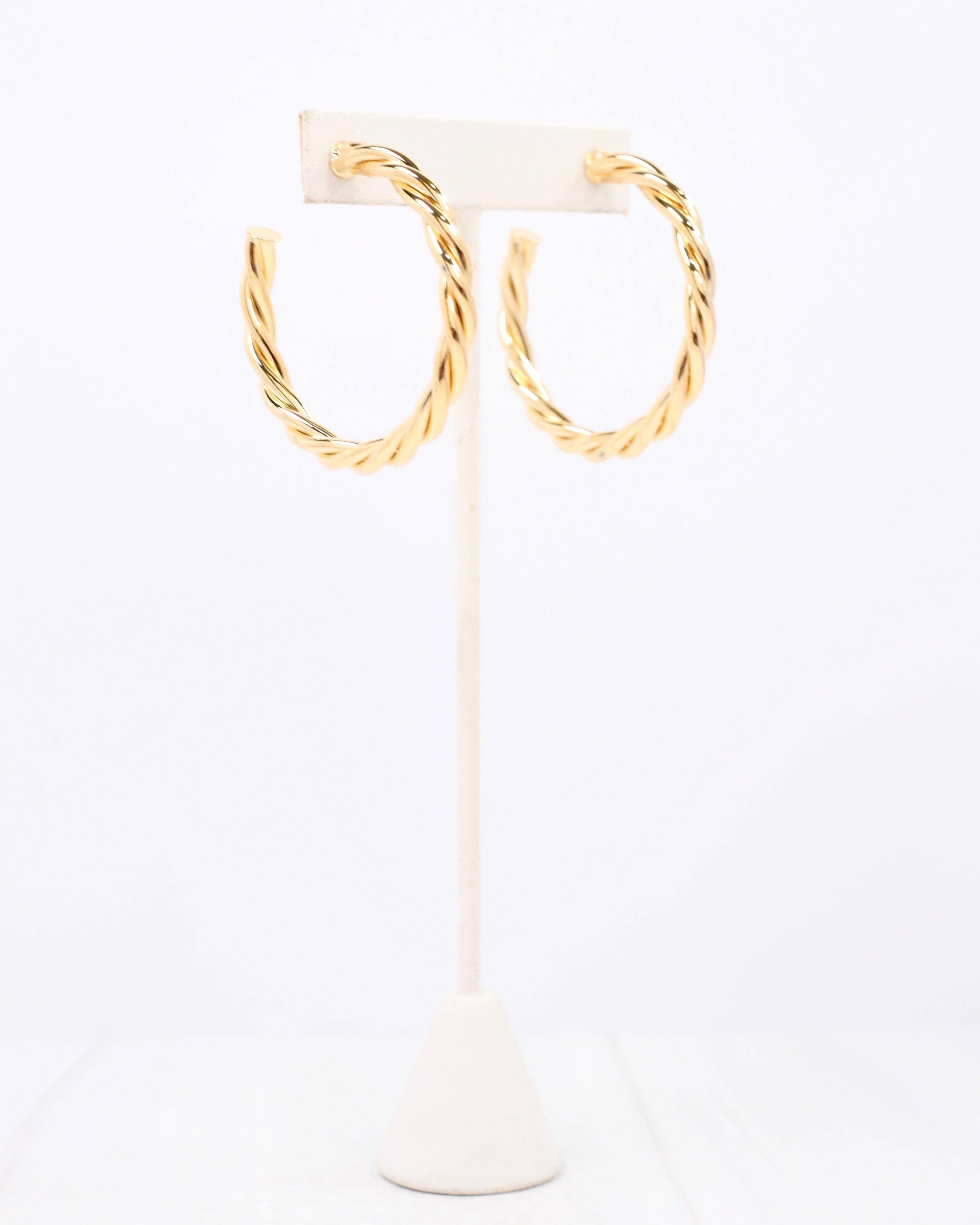 The Davies Twisted Hoop Earring in 18K gold-filled shine adds a stylish twist to your everyday look. Durable and elegant, it’s perfect for all-day wear.