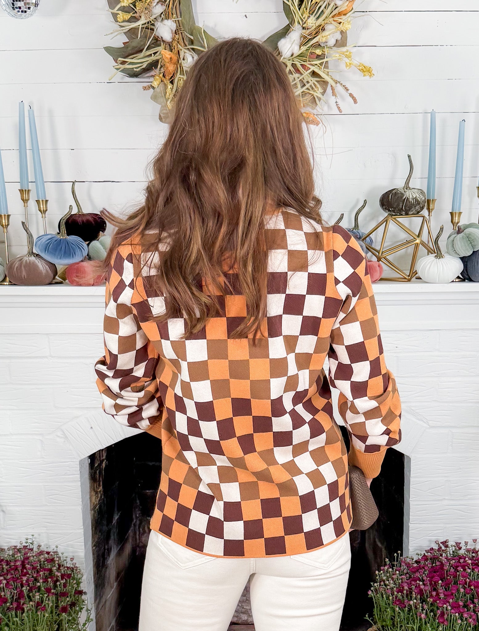 CHECK this cutie sweater out! Our Cameron Tweed Turtleneck Sweater showcases a bold checkered pattern in warm Autumnal hues, designed in a soft knit that balances structure with ease! Her classic rollover turtleneck offers cozy coverage, while her ribbed cuffs add a subtle puff to the long sleeves! Perfect for pairing with an ecru denim for the Fall season or even a pleather skort with tall boots! Either way - people will be CHECK-ing you out!