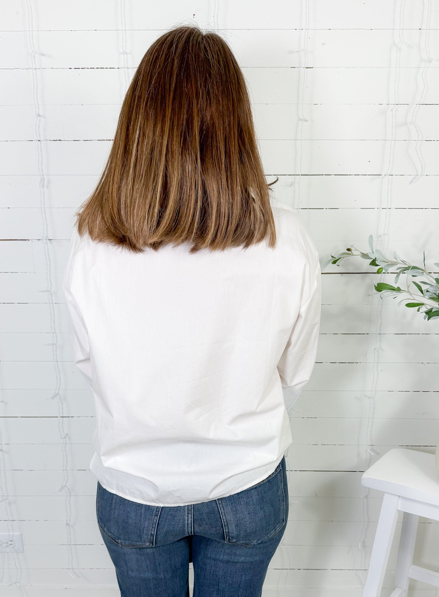 Step into preppy, charming style this season with our classic Fallon White Ruffle Front Top! She is beautifully detailed with a standing ruffle collar + a coordinating ruffle-trimmed button placket running down the front! Designed with a relaxed fit, Fallon offers easy wear, while her long sleeves are neatly finished with a buttoned cuff, making her an effortlessly polished piece! She pairs best with your favorite skirt + a chic bootie to help you complete your preppy look this season!