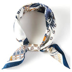Introducing our Geometric Pattern Square Scarf! This 27.5" x 27.5" scarf can be styled in multiple ways - as a bandana or a neck scarf.