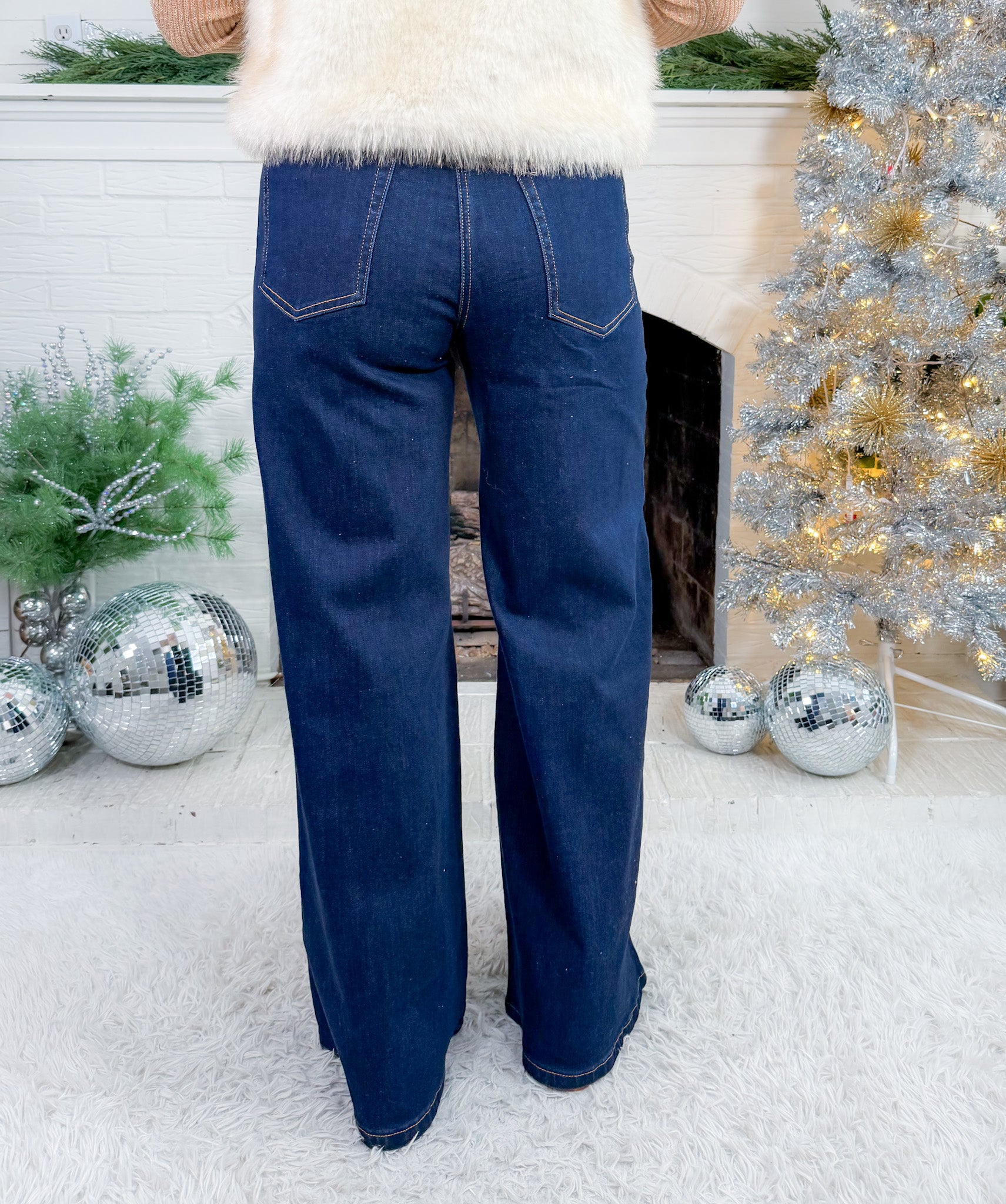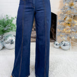 Transform your Fall + Winter wardrobes with our NEW Gerhart Front Seam Dark Denim Jeans! Her flattering high waist accentuates your curves, while her fashionable double button adds a stylish touch! With a wide leg design + dark denim wash, you'll look effortlessly chic + feel confident no matter where you wear them!