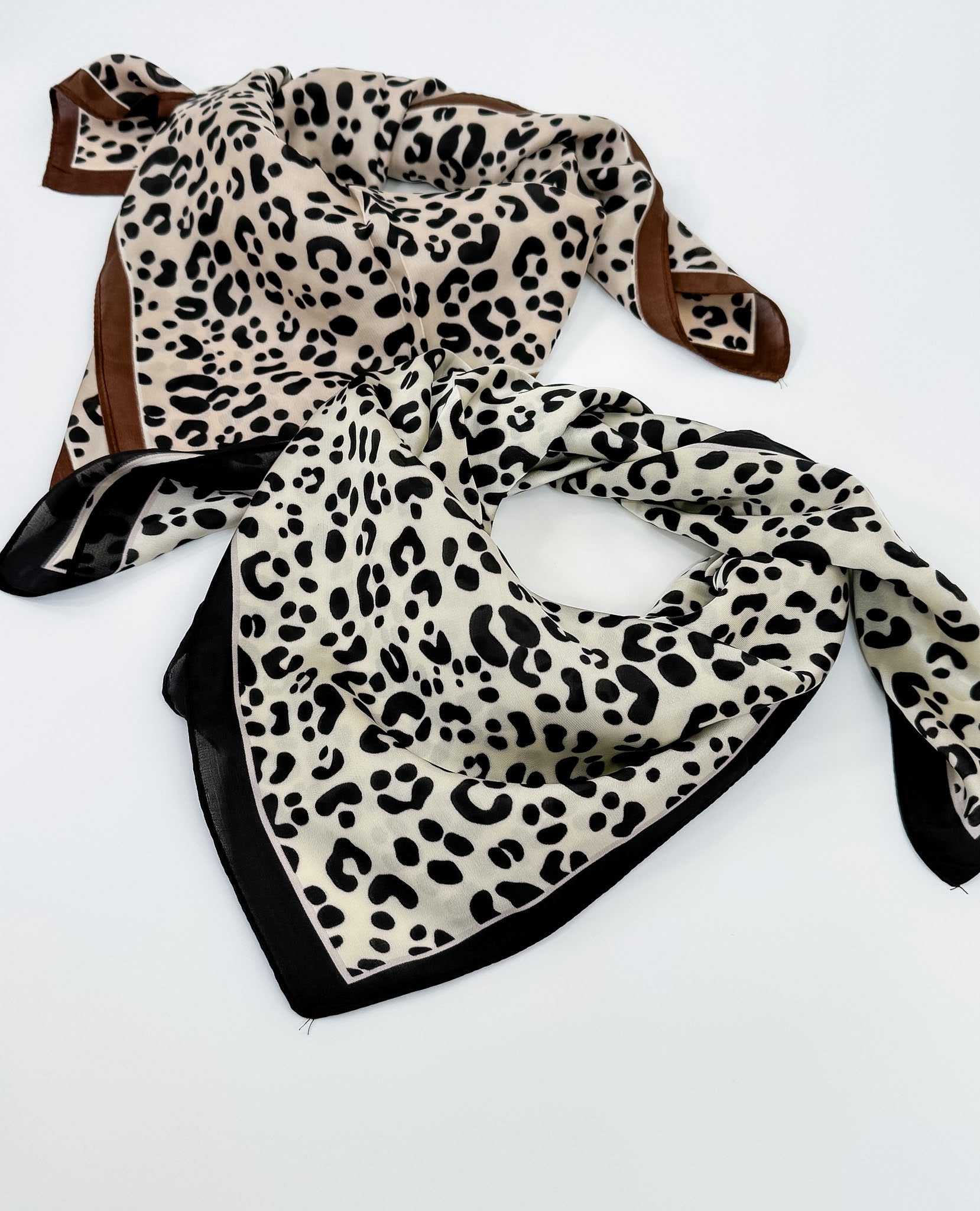 Our Leopard Bandana Square Scarf is an essential addition to your wardrobe.