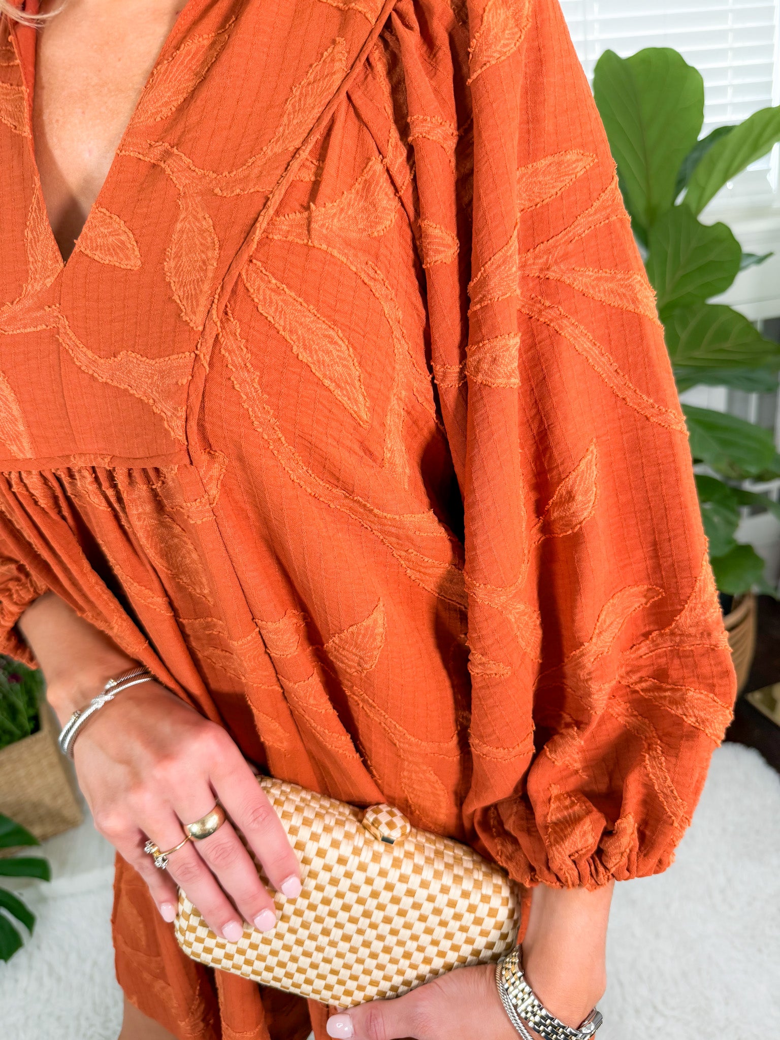 What's rust + gorgeous with floral all over? That's our Remi Rust Mini Dress! Great for all things Fall with her colors, fit and styling capability! She pairs beautifully with a tall boot for Family photos or heels for chic Fall date night! Remi does it all for you!