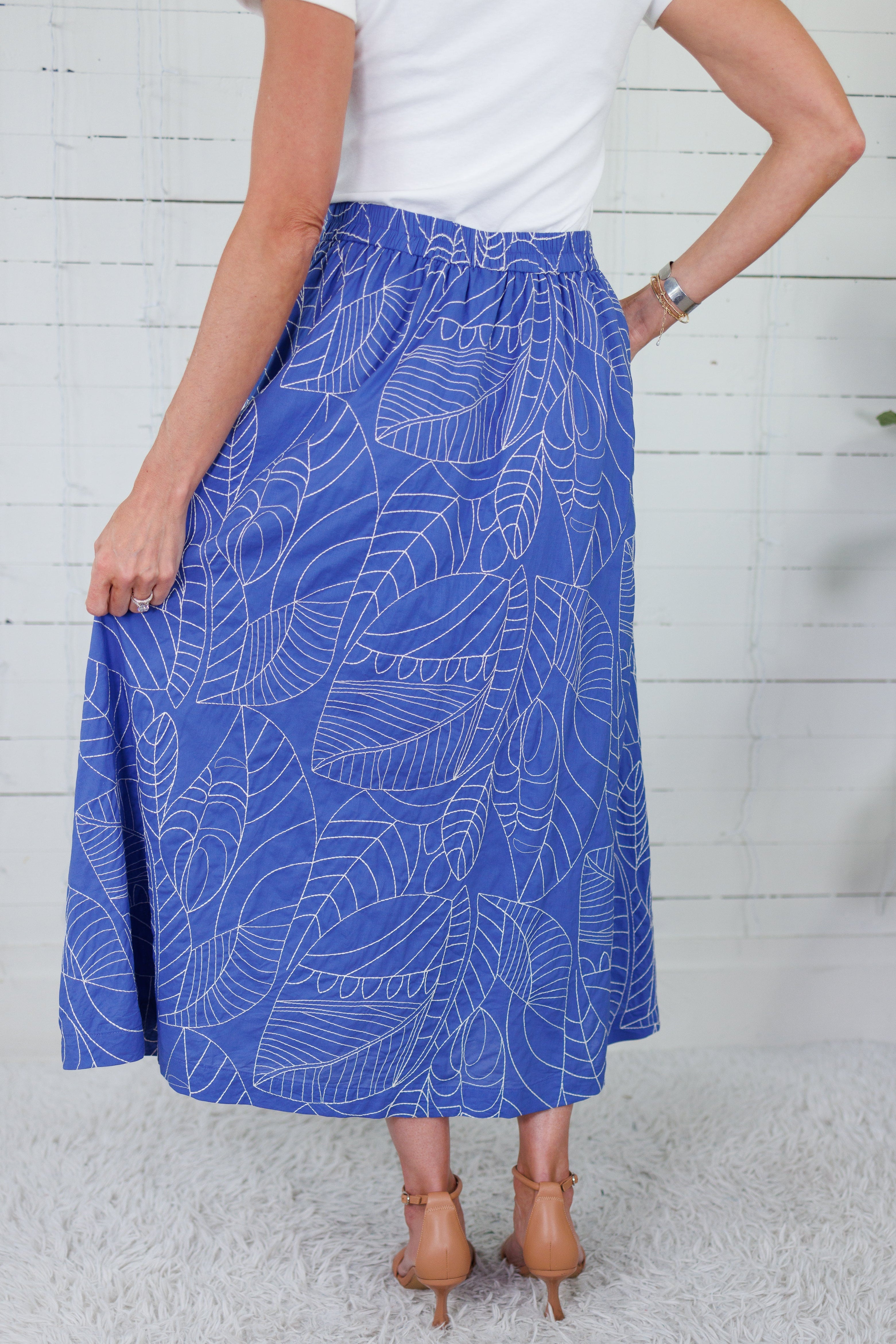 Our Jergen Cerulean Blue Button Front Skirt feels like a breath of fresh air for your Spring wardrobe! With her cerulean blue body + embroidered leaf designs throughout, she captures the thoughts of a springtime, coastal afternoon perfectly! Jergen is designed with a flattering high-rise waistband, a full button-front placket for a classic, elongated look, great flow + easily versatility for date night or strolling the town!