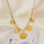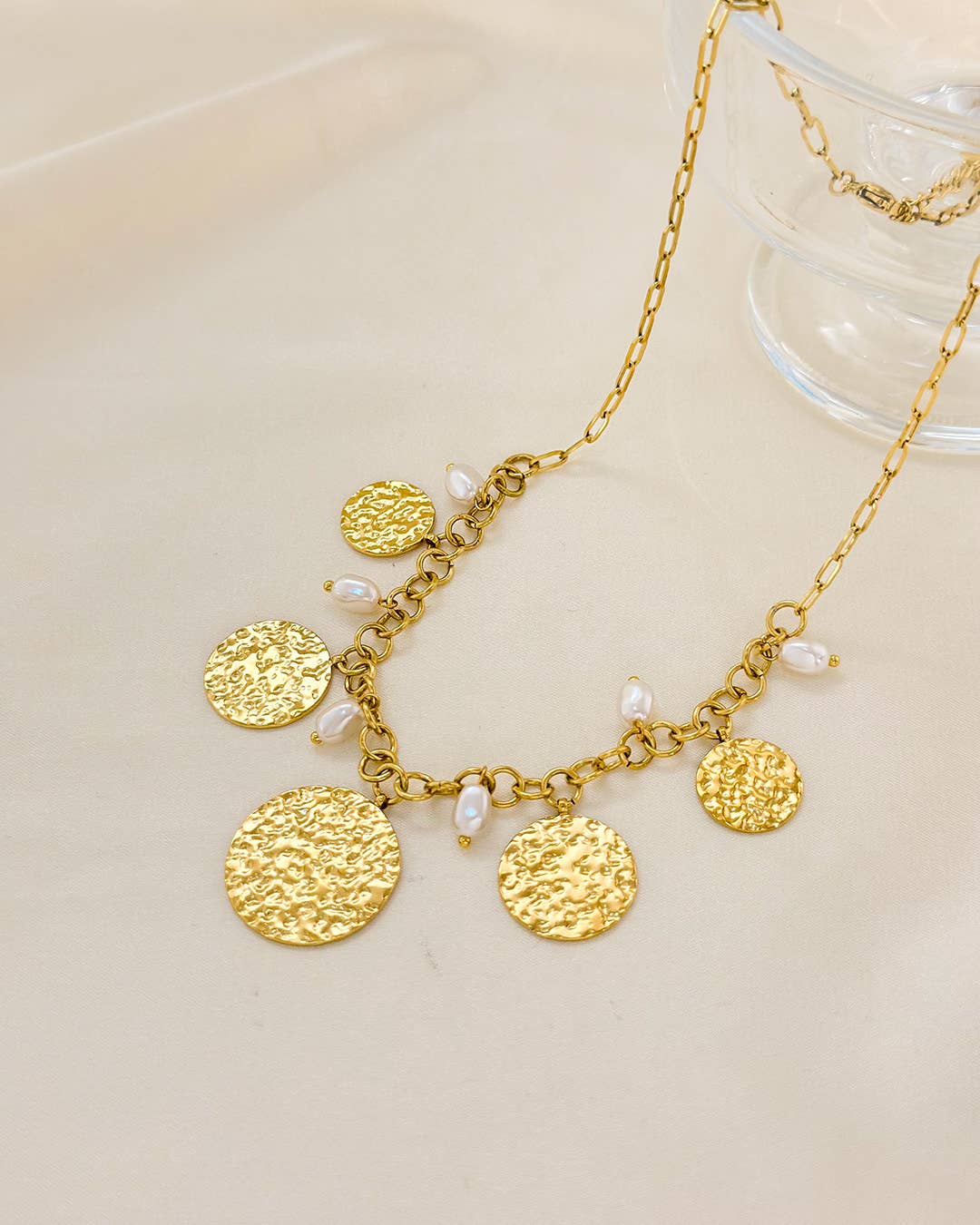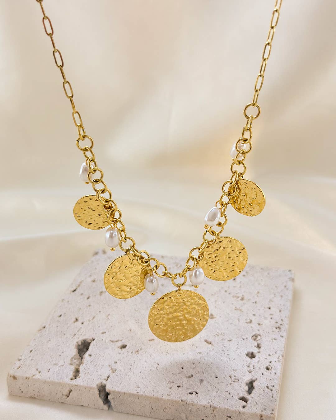 An easy way to elevate any style. Take an outfit from day to night with this beautiful pearl and disc necklace.