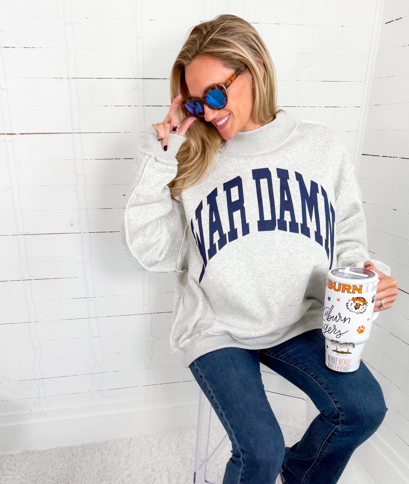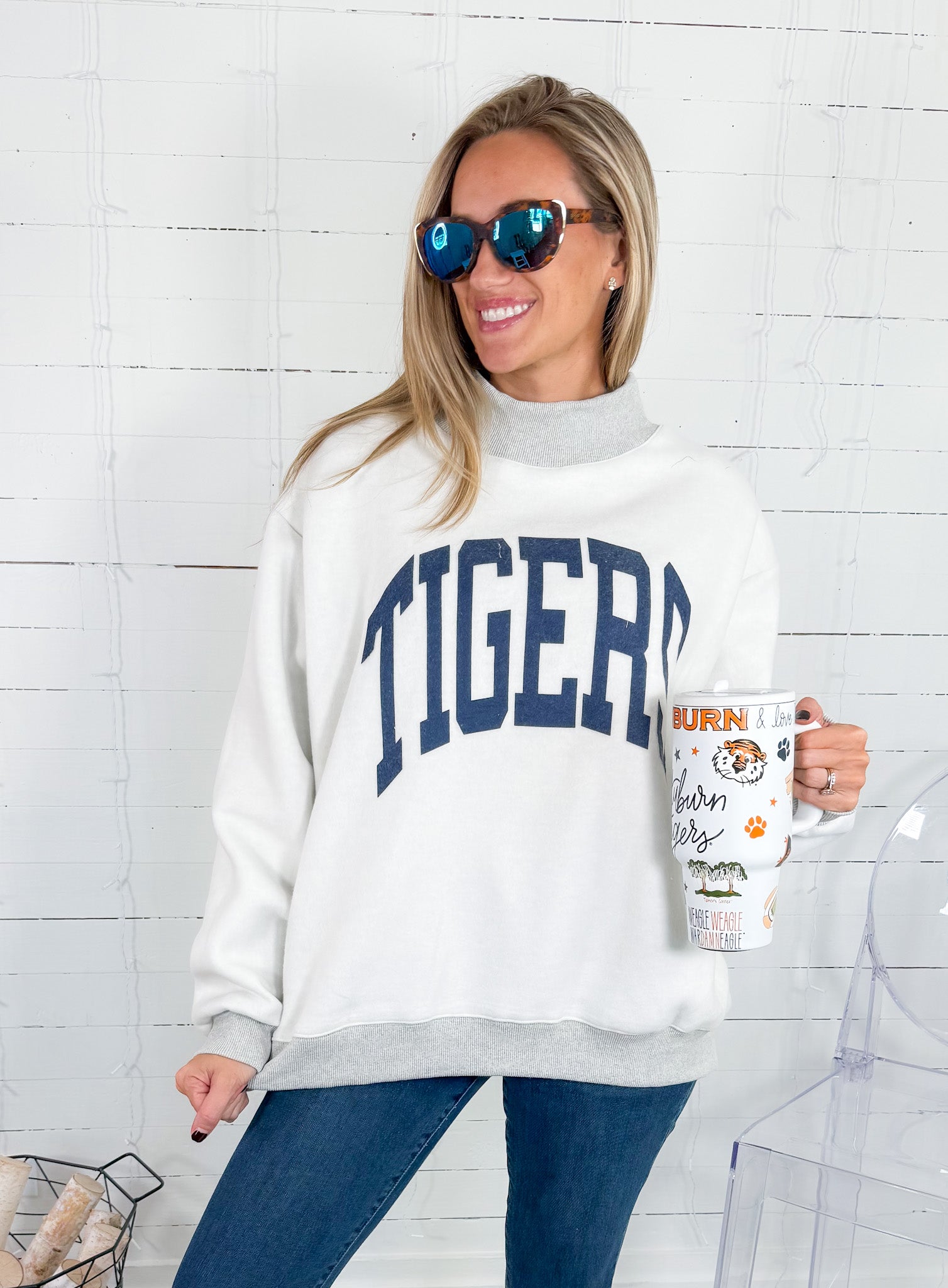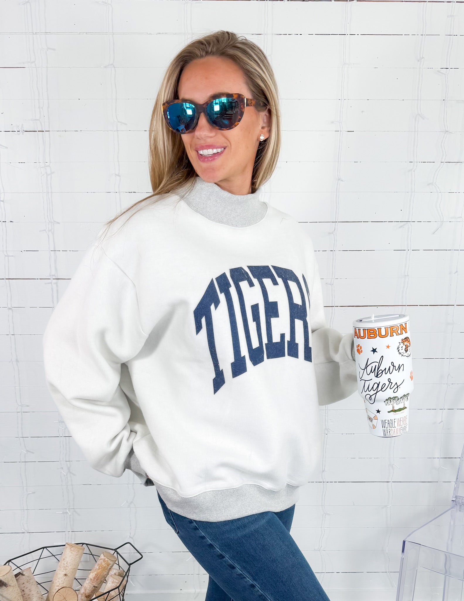 'WAR DAMN & TIGERS' Print Reversible Mock Neck Sweatshirt