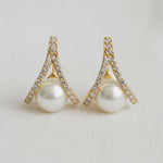 Vintage Inspired Pearl and Cubic Zirconia Cross Stud Earring